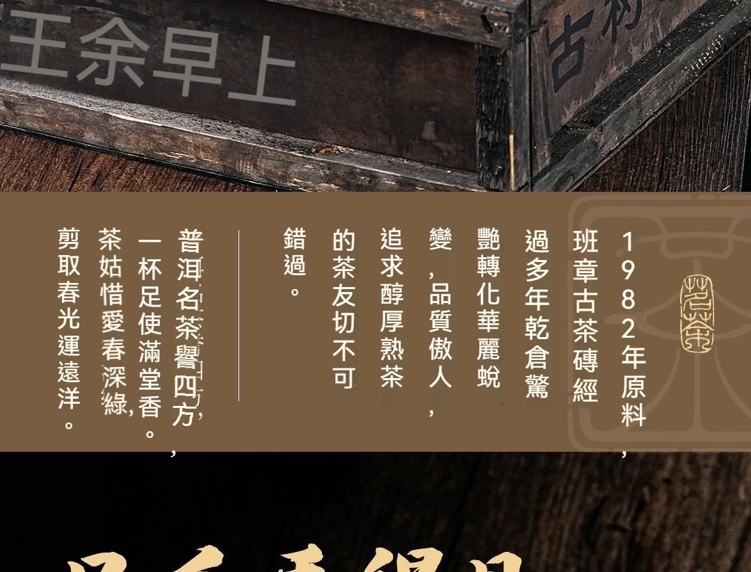 【好料子 好倉儲】雲南正宗1982年班章普洱老熟茶 1000克/磚
